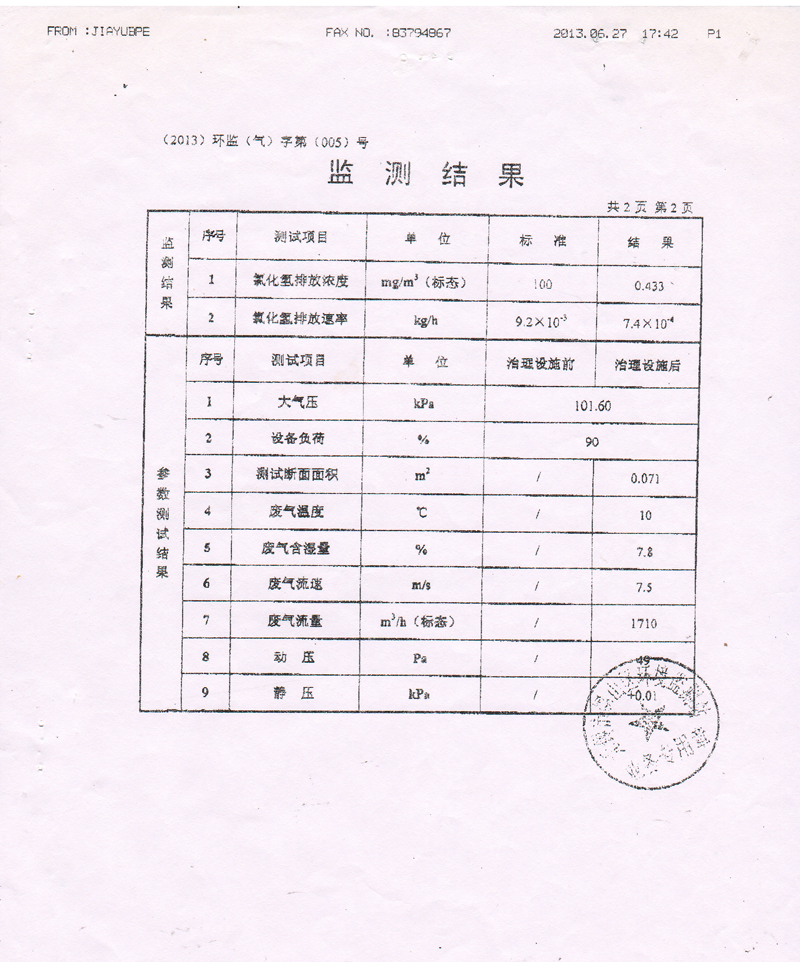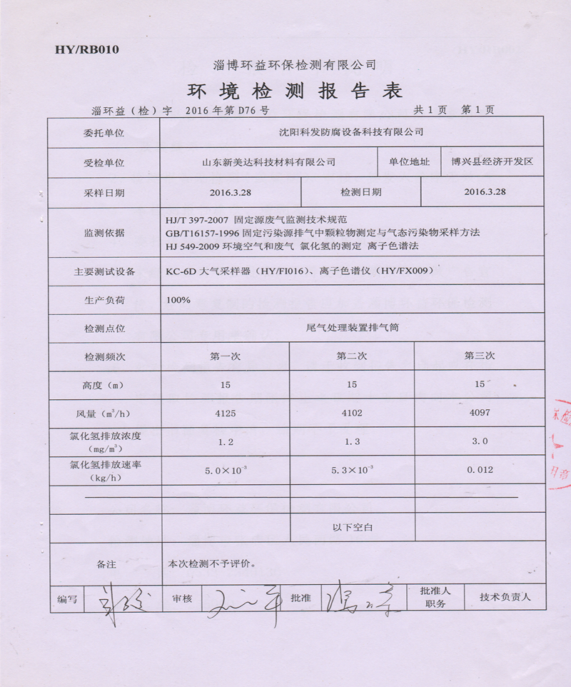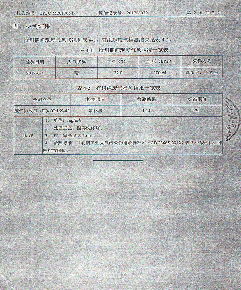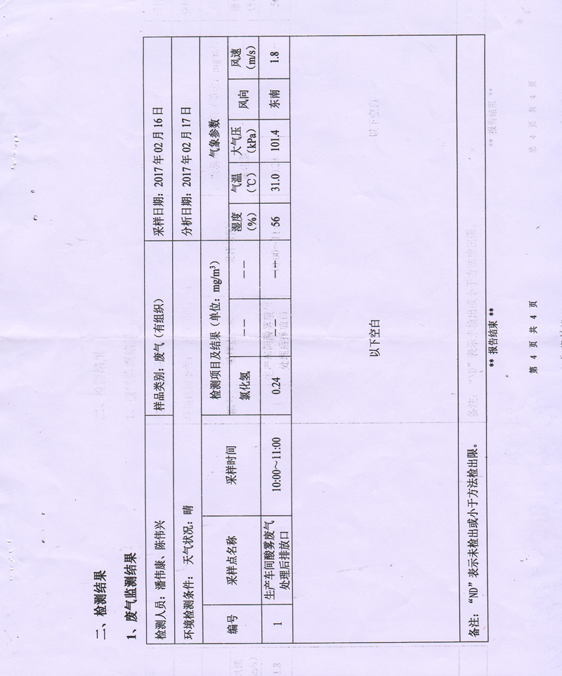檢測結(jié)果中未檢測出HCL氣體,國家標(biāo)準(zhǔn)為小于30mg/m3